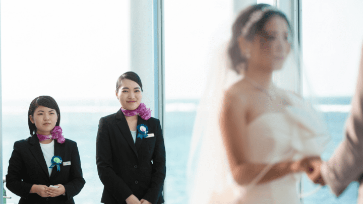 日本のクオリティーを求めて、結婚式を日本で挙げる世界のカップルが急増。次世代のブライダル業界は語学が必要。業界を挙げて、語学のできるスタッフを探している。